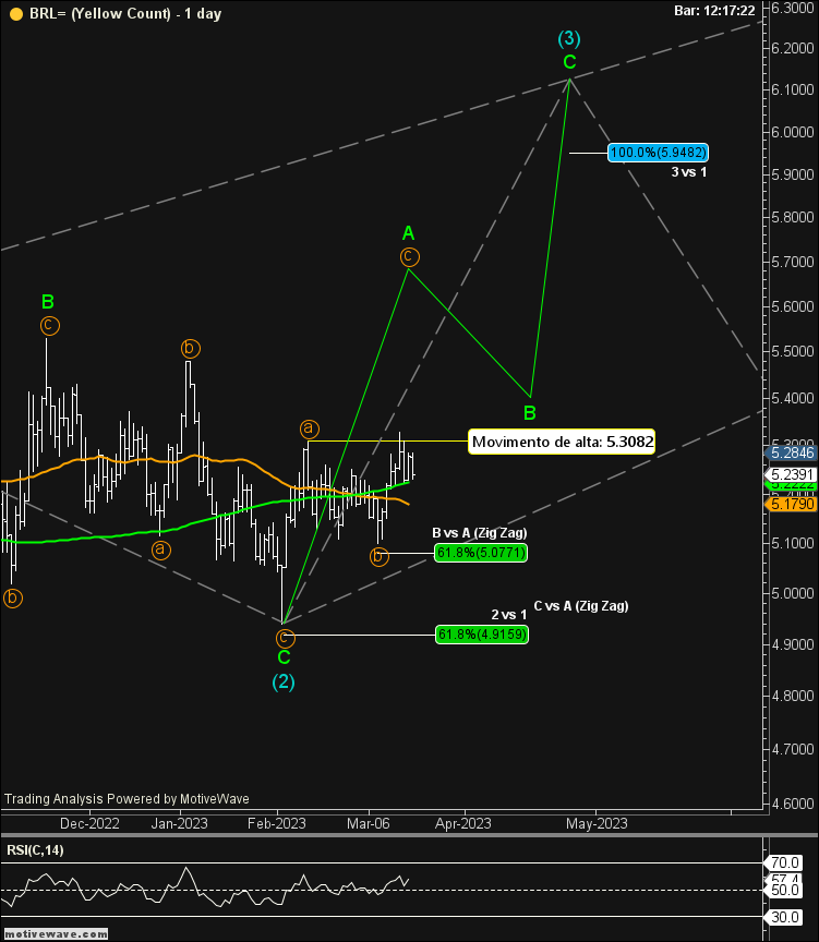 O dólar se encontra exatamente nos mesmos níveis da semana passada não apresentando nenhuma novidade nos meus cenários. Entretanto, vislumbro uma possibilidade de alta mais pujante caso o dólar suba mais forte daqui em diante. Por enquanto, todas as hipóteses são para cima. Ultrapassar o nível de R$ 5,3082 passa ser um must para que ocorra. Fiquem atentos a possível sugestão de trade.