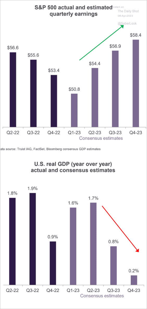 Essa confiança nas margens ajuda a explicar por que as expectativas de ganhos não estão tão más. Eles estão diminuindo, como fazem nas temporadas de relatórios, mas, se olharmos para as previsões em uma base contínua para os próximos 12 meses e para os 12 meses depois, percebemos que estão bem nas últimas semanas.