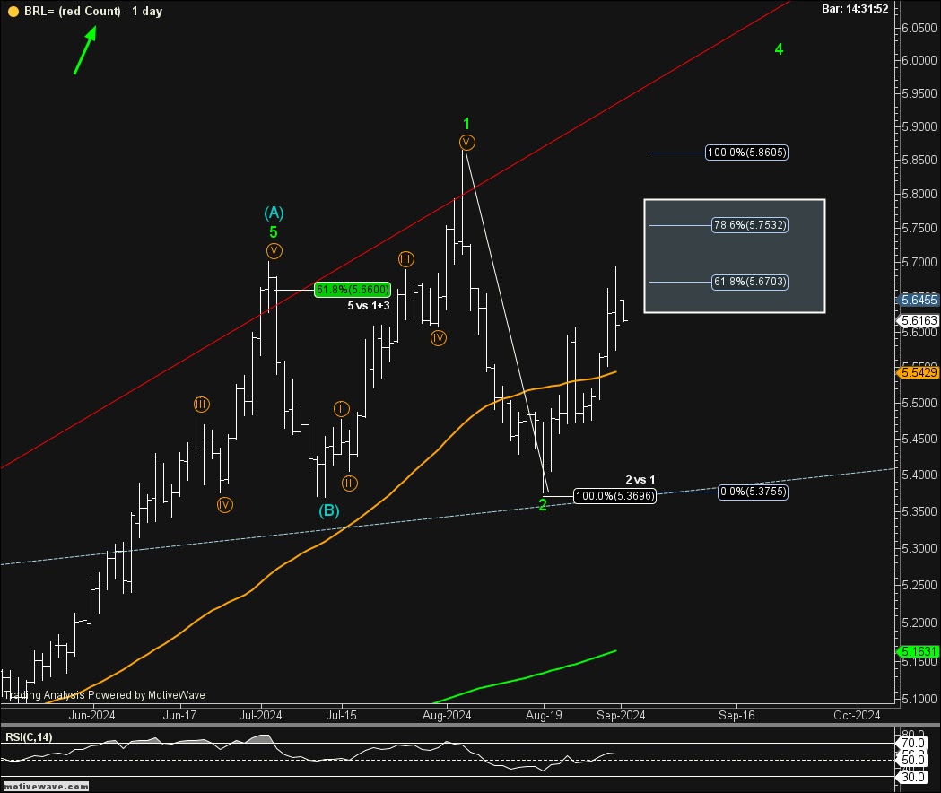 O dólar ameaçou cair na semana passada, porém, na sexta-feira e hoje, voltou ao nível da última segunda-feira. Mantenho as orientações feitas no post acima: ... “Quando as opções técnicas são divergentes, o melhor é esperar uma definição. Eu poderia resumir da seguinte forma: dentro do intervalo de R$ 5,7565 / R$ 5,4730 – aproximadamente 5% – você pode fazer outra coisa; se romper para cima ou para baixo, podem surgir oportunidades” ...
